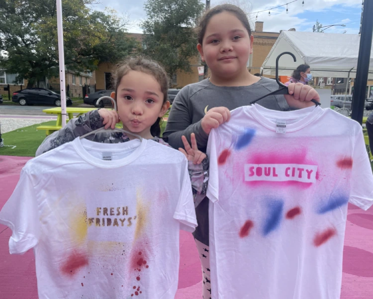 Event where kids and adults make Free Custom T-shirts right on Chicago Ave.